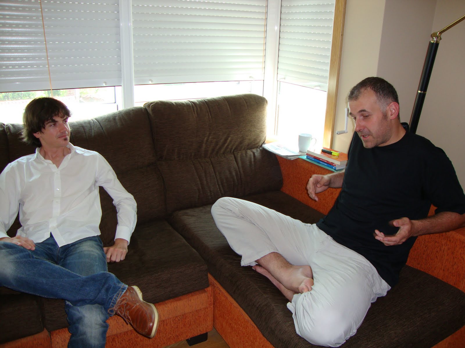 Valentim tivo a xentileza de nos convidar a Caralladas -nosquedaportugal- e máis a Diego -Conversas Galegas- a un chá no seu domicilio en Santiago de paso que celebrabamos a conversa que pasamos a compartir con todos vós. Conversa que agardo sirva para tender pontes entre todos os que, pensando de xeitos diferentes (reintegracionistas, isolacionistas, galeguistas, independentistas, de esquerdas, de dereitas ou que non saben de que van), loitamos por unha mesma meta -a normalización da nosa língua no noso país- e deberiamos comezar a entendernos e remar pola nosa língua todos na mesma dirección dunha santa vez.